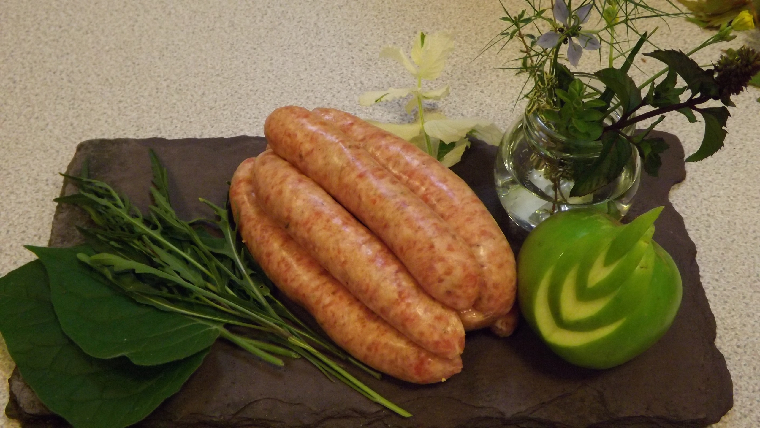 Pork sausage with dried apple to produce a sweeter flavour.